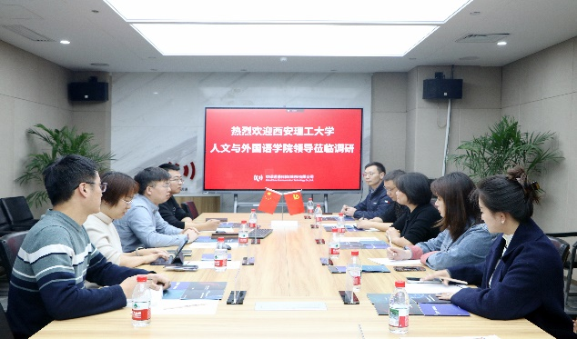 为深化产教融合,探索校企合作新模式,11月21日下午,6776永利集团院长张洁、副院长黄勇、田晓蕾、翻译硕士教育中心主任王和私、学院办公室副主任孙雅格等一行五人赴中译语通科技(陕西)有限公司开展合作交流。中译语通科技(陕西)有限公司数据运营部总监吉子珑、语言服务事业群总监陈栋、技术交付中心项目经理王艳强、数据运营部项目经理赵峰等公司高层管理人员热情接待了学院代表团。
