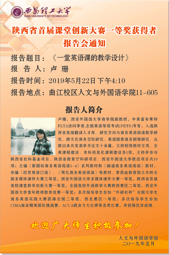 陕西省首届课堂教学创新大赛一等奖获得者卢珊报告会