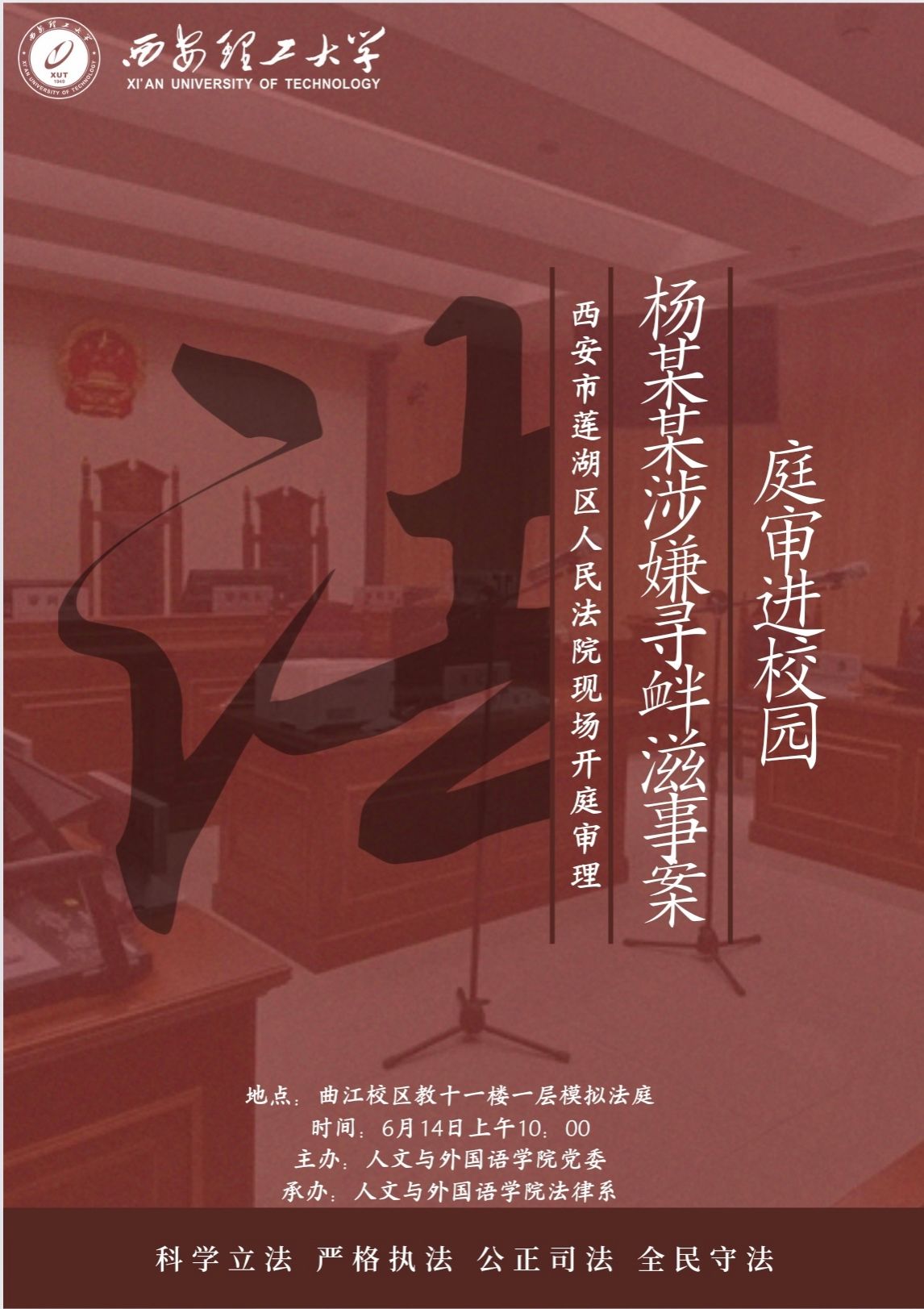 庭审进校园:西安市莲湖区人民法院来我校开庭审理“杨某某涉嫌寻衅滋事罪案”