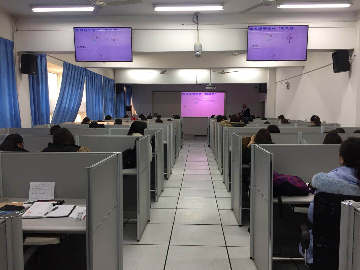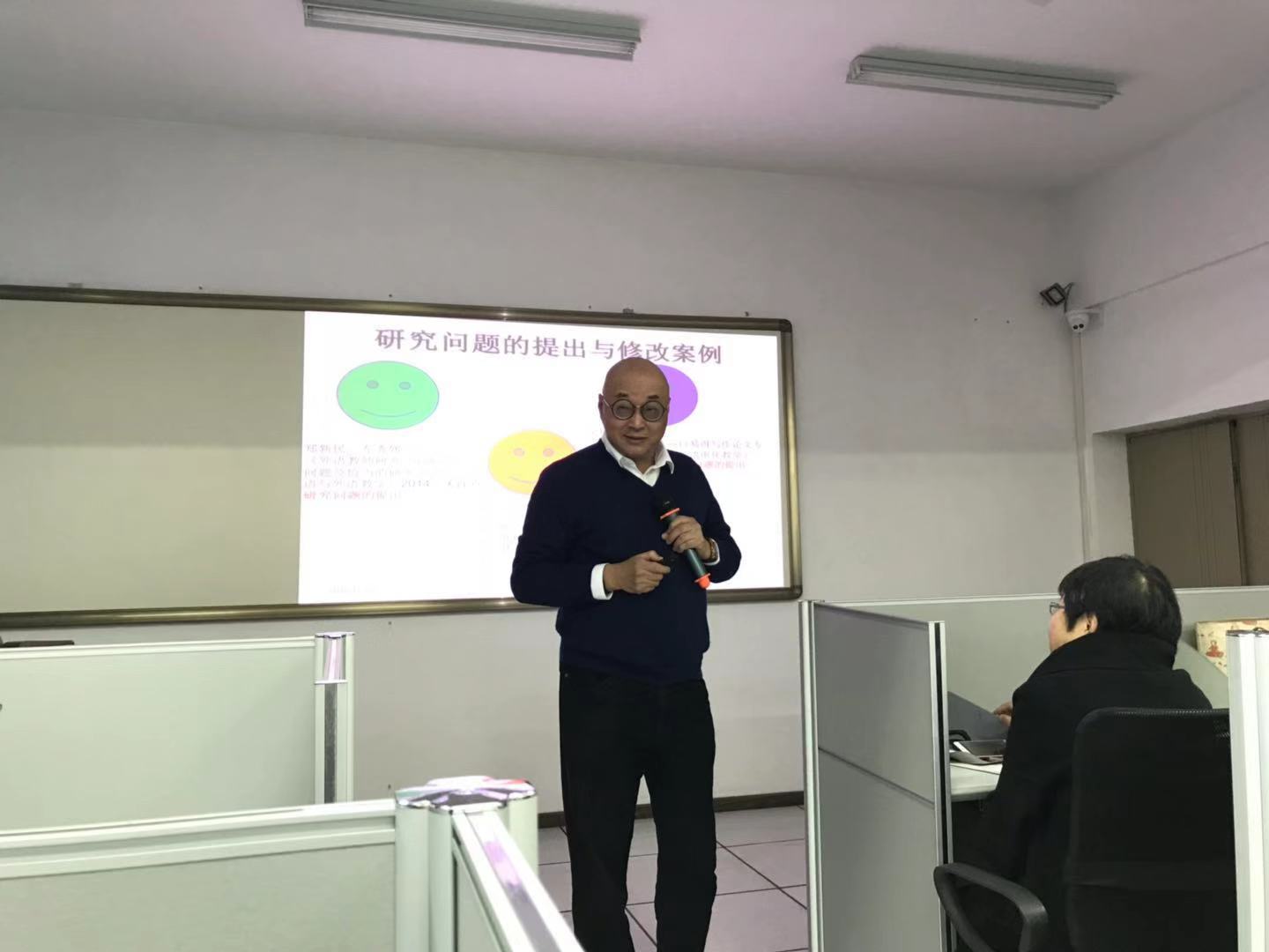 郑老师通过对外语教学的内容、过程的简要阐述,引出了外语教学中的最重要的环节之一:教师认知与外语教学与研究。教师认知与教育背景和经历、教师专业发展、教学处境、课堂教学等因素相关,语言教师专业发展就要进行教学改革。郑老师通过自己的研究经历说明研究是一个渐进的过程,要善于发现研究问题,研究自己擅长的内容。他以匿名专家的评价例子总结出学术论文写作中要注意的主要问题,即,研究问题不明确、文献综述视角及引用问题、研究设计欠缺、论证过程和结论呈现形式有待加强、强化论文讨论、语言基本功弱。以具体研究案例说明在研究定界时,要设定研究计划的局限或边界,以提供一个清晰的研究重点,因此选题不能贪大,研究问题要尽可能聚焦。在用实例讲解了研究问题的确定后,又辅以实例讲解了文献综述的撰写、数据收集方式、数据分析、结果发现、逻辑思辨中应注意的问题。整个报告内容丰富、翔实、有理有据,跟教学、教师息息相关,又从教学拔高到科研,语言风趣幽默,得到了在场教师和研究生的一致好评。