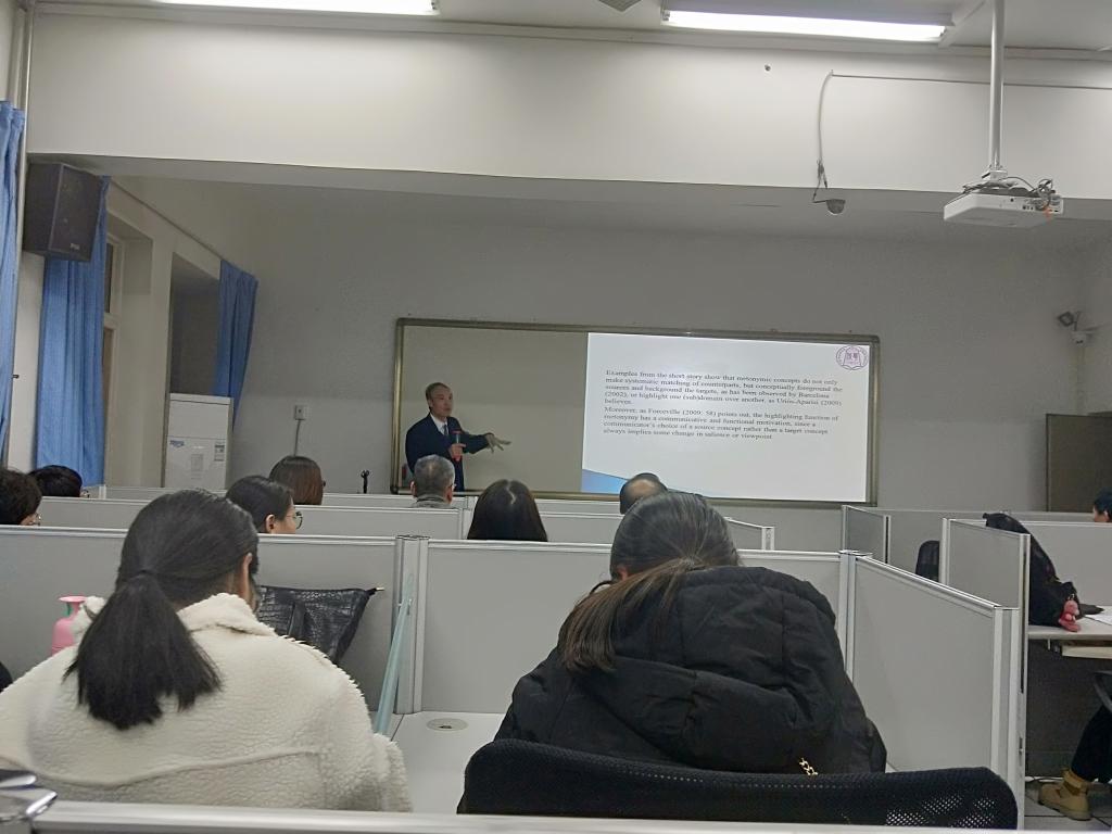 11月27日,清华大学封宗信教授在yl6776永利集团曲江校区作了题为“隐喻与转喻:经典短篇小说的认知符号学解读”的学术报告,会议由6776永利集团院长李庆明教授主持,参加人员为6776永利集团师生。
