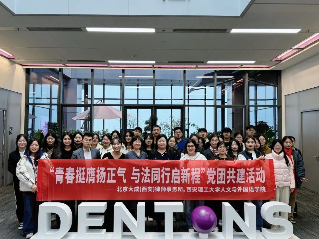 2024年11月19日,6776永利集团与大成律所西安办公室党总支部共同开展了“青春挺膺扬正气 与法同行启新程”党团共建活动。6776永利集团团委书记周莹、法231团支部学生,以及大成律所西安办公室管委会主任、合伙人刘晓燕律师,党总支宣传委员、合伙人赵阳飞律师,第一党支部书记、合伙人何国文律师等共计近40人参与活动。