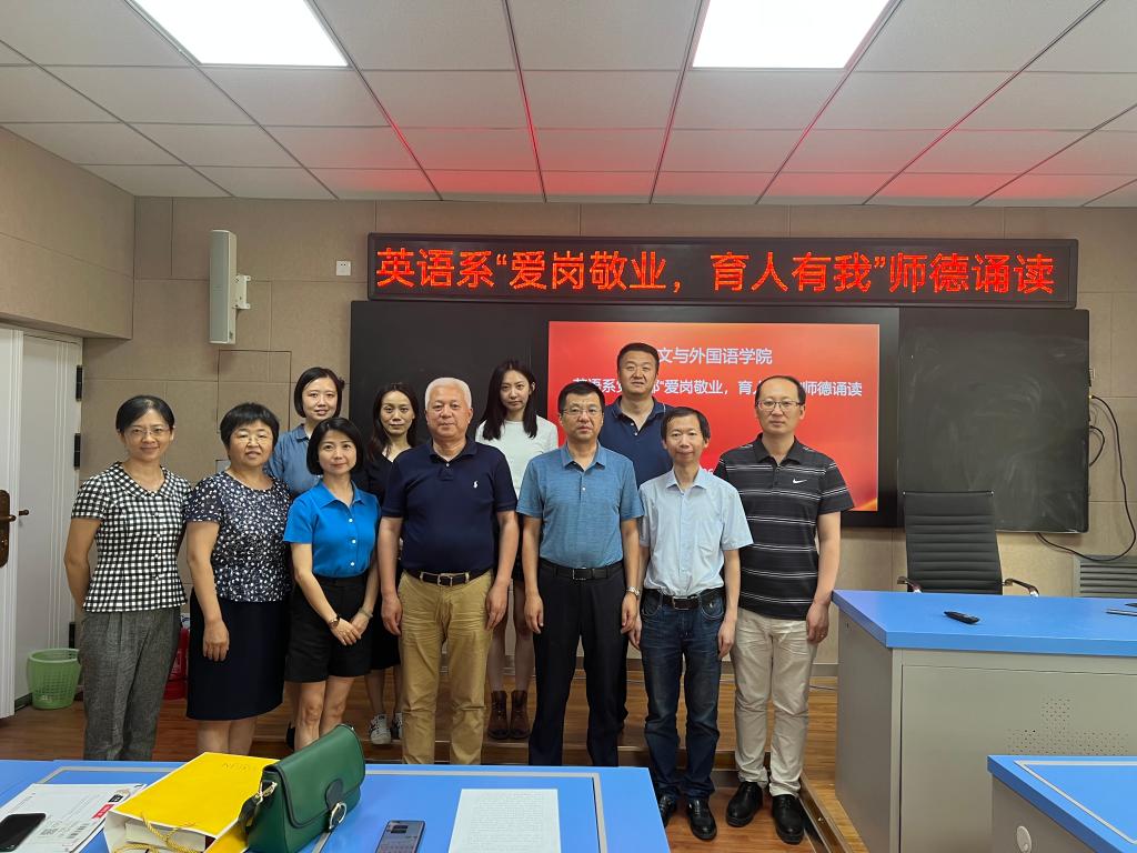 为进一步凝聚师德正能量,激励广大教师和教育工作者不忘立德树人初心,厚植爱国情怀,英语系党支部于6月21日举行了 “爱岗敬业,育人有我”师德诵读活动。学院党委书记吴溥峰受邀参加。