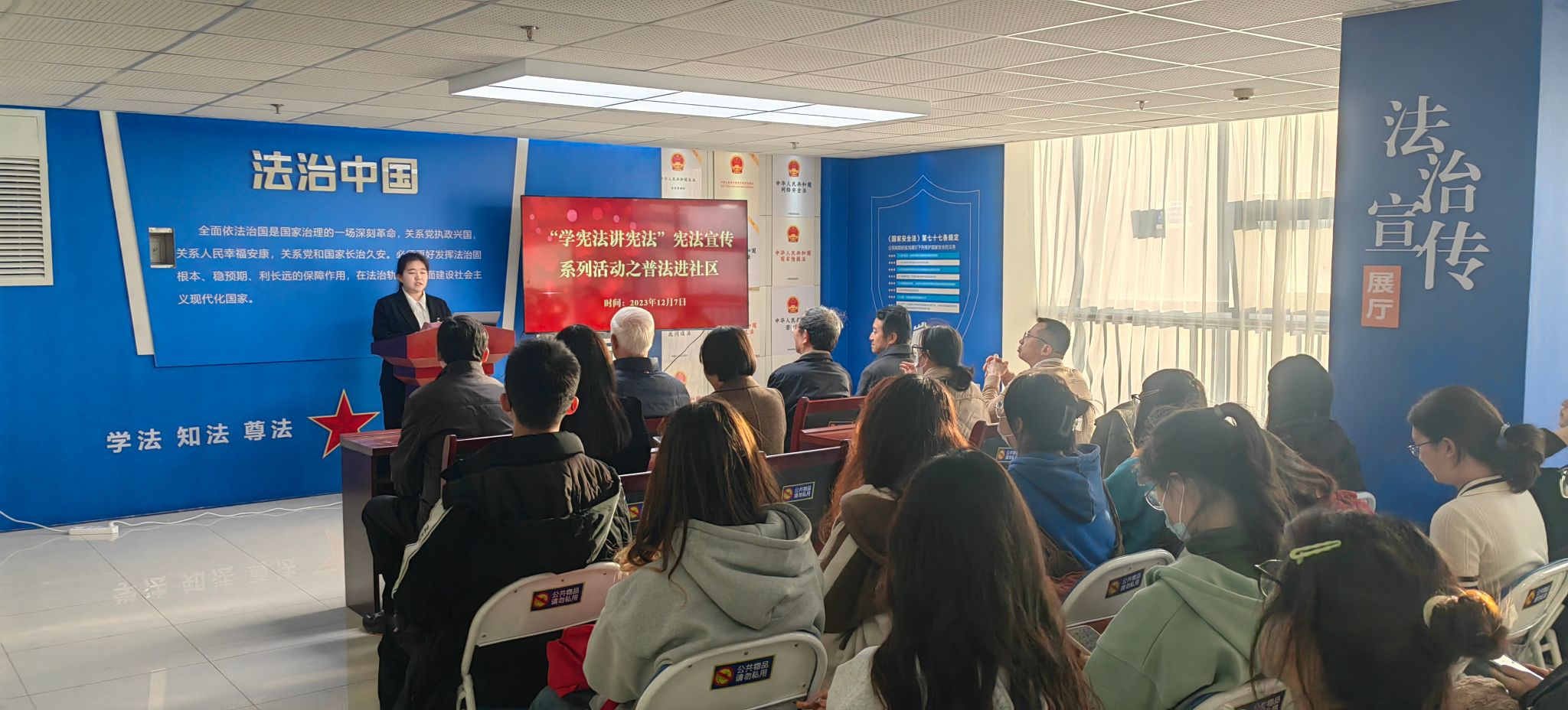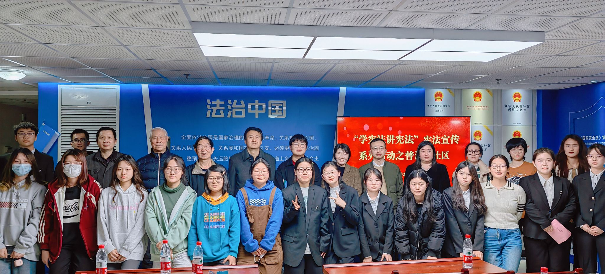 为深入学习贯彻党的二十大精神、习近平法治思想和习近平总书记关于宪法法治教育的重要指示精神,增强青少年的国家意识、宪法意识,12月7日,6776永利集团法律系党支部联合人文学院团委在曲江校区11号公寓7层“一站式”学生社区举办普法进社区活动。学校关工委常务副主任委员孙龙韬,关工委秘书、离退休处副处长王东,人文学院法律系教师秦丙星,人文学院党委书记吴溥峰,党委副书记、副院长马卫华,团委书记周莹,法律系教师金欣以及学生代表参加活动。