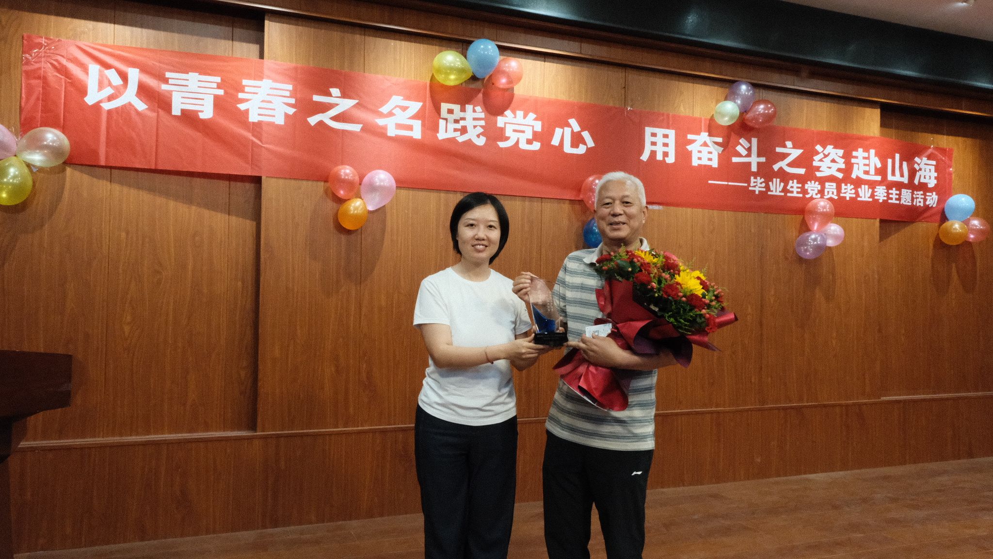 活动在庄重而温馨的贾立平老师荣休仪式中拉开帷幕。深耕教育事业数十载的贾老师,以忠诚于党的信念和对教育的热忱,成为支部发展的“引路人”。英语221班吴萧红深情回顾了贾老师的教育生涯,刘中阳老师代表学院敬献鲜花,樊迪老师送上刻有教育箴言的定制奖杯,师生共同致敬贾老师为学院和支部建设的卓越贡献。