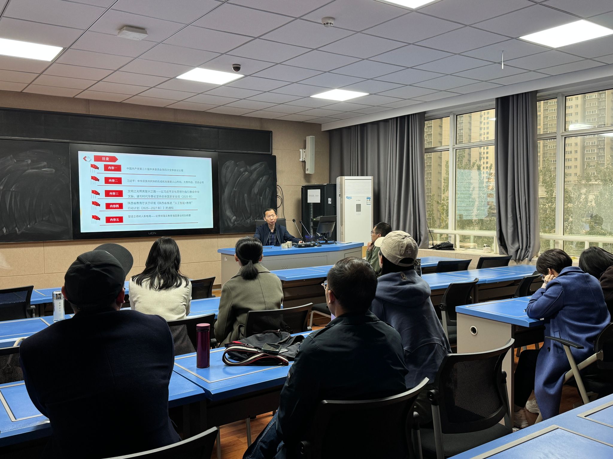 此外,全体教师还共同学习了《求是》第19期发表的习近平总书记的重要文章《中华民族共同体的形成和发展是人心所向、大势所趋、历史必然》、《人民日报》10月8日发表的文章《文明之光照亮复兴之路——以习近平文化思想为指引赓续中华文脉、谱写时代华章论坚持总体国家安全观(2025年)》、陕西省教育厅关于《陕西省推进“人工智能+教育”行动计划 (2025-2027年)》的通知,《中国教育报》1月21日发表的文章《塑造立德树人新格局——论贯彻落实教育强国建设规划纲要》。并围绕理论学习内容,进行了主题发言。教师们结合自身教学实际,理论学习内容展开了热烈讨论。大家一致认为,作为新时代的大学教师,筑牢政治根基,把稳思想之舵,将党的创新理论与教育教学深度融合,坚定文化自信,铸牢中华民族共同体意识,同时要积极拥抱人工智能等新技术,在英语教学中充分融入人工智能技术,努力提高教学质量和效果,始终围绕立德树人根本任务,为培养担当民族复兴大任的时代新人贡献力量。